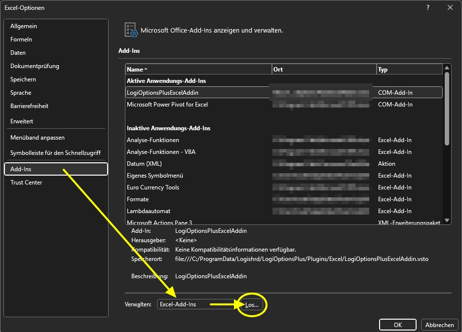 Wer das lieber "per Hand" machen möchte oder ein anderes AddIn-Verzeichnis benutzt, dem habe ich die Datei LambdaAutomat.xlam und die Ini-Datei LambdaAutomatIni.ini beigelegt. Beide Dateien müssen in das AddIn-Verzeichnis. Danach kann der Lambda-Automat in Excel über Datei/Optionen/Add-Ins -> Excel-Add-Ins -> Los... im dann erscheinen Fenster ausgewählt werden.